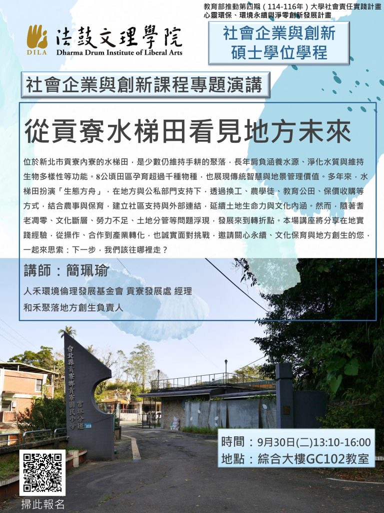 位於新北市貢寮內寮的水梯田,是少數仍維持手耕的聚落,長年肩負涵養水源、淨化水質與維持生物多樣性等功能。8公頃田區孕育超過千種物種,也展現傳統智慧與地景管理價值。多年來,水梯田扮演「生態方舟」,在地方與公私部門支持下,透過換工、農學徒、教育公田、保價收購等方式,結合農事與保育,建立社區支持與外部連結,延續土地生命力與文化內涵。然而,隨著耆老凋零、文化斷層、勞力不足、土地分管等問題浮現,發展來到轉折點。本場講座將分享在地實踐經驗,從操作、合作到產業轉化,也誠實面對挑戰,邀請關心永續、文化保育與地方創生的您,一起來思索:下一步,我們該往哪裡走?