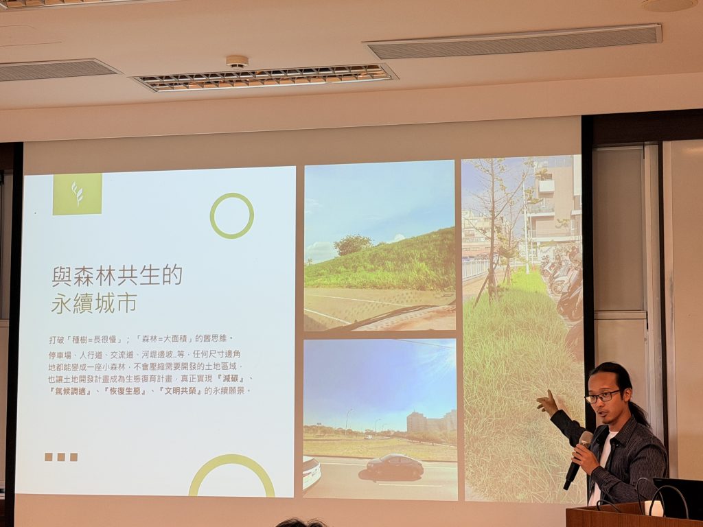 演講一開始,顏銘毅並未直接談論種樹技術,而是拋出了對當代氣候變遷的深層憂慮。「我們用了短短150年,就讓地球升溫一度,這在過去需要五千年的時間。」他坦言,自己曾是氣候變遷的焦慮者,但在接觸到日本植物生態學家宮脇昭博士(Akira Miyawaki)的理論後,他看見了曙光。