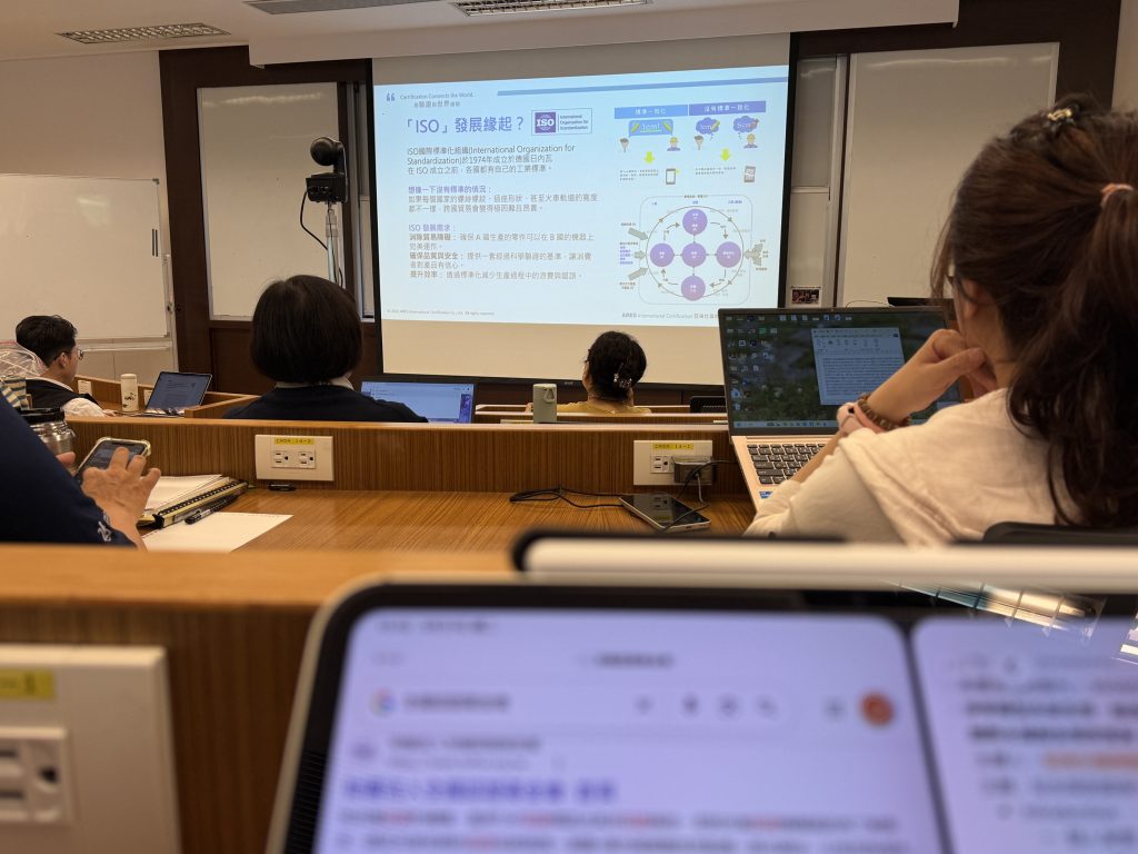 在專業內容上,丁處長深入淺出地解讀了當前永續發展的核心支柱。她提到,在碳中和與淨零轉型的浪潮下,企業往往面臨「綠漂」的質疑。而 ISO 標準(如 ISO 14064-1 組織盤查、ISO 14067 產品碳足跡等)的存在,並非為了限制發展,而是為了建立一種「全球通用的誠信語言」。