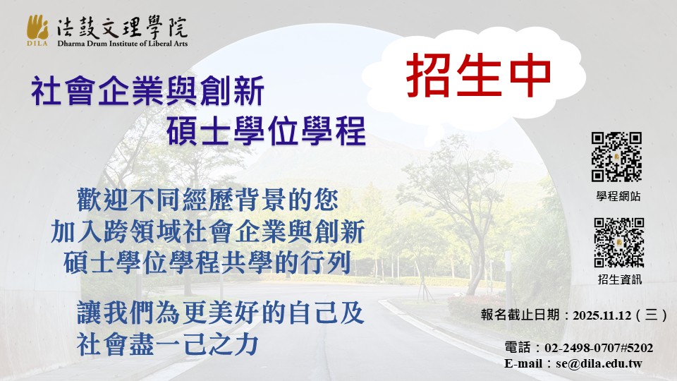 歡迎不同經歷背景的您 加入跨領域社會企業與創新碩士學位學程共學的行列