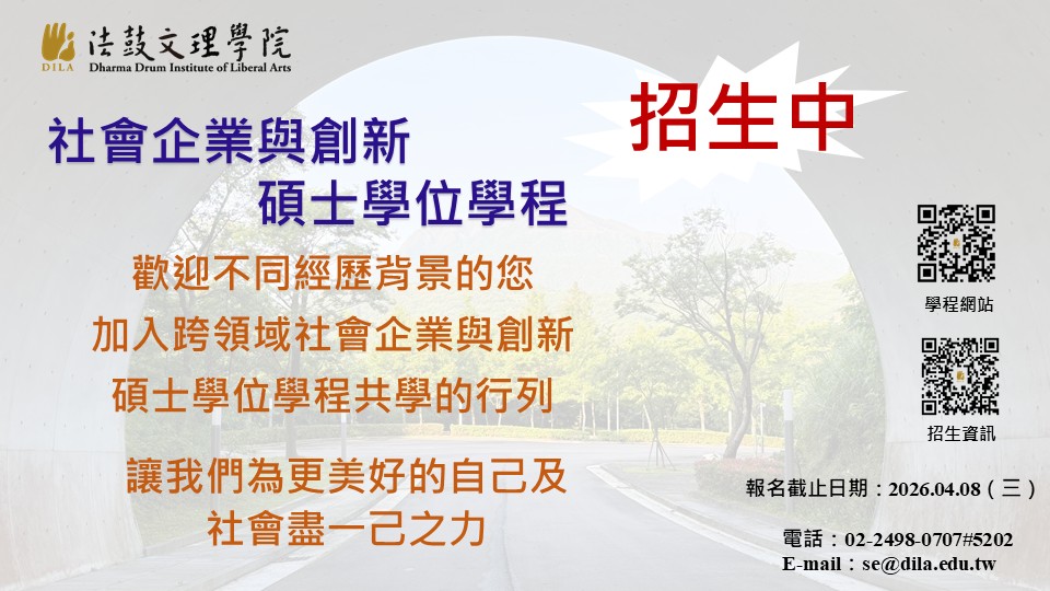 法鼓文理學院 社會企業與創新碩士學位學程 招生中!